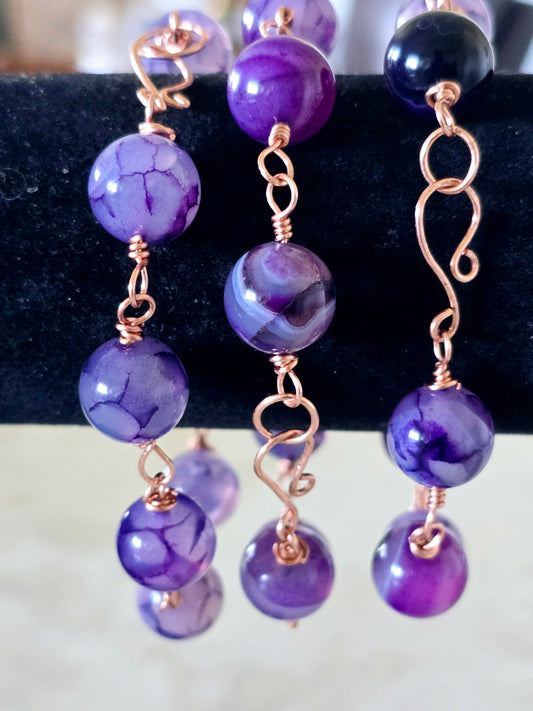 Beaded Wire Wrapped Bracelet Gemstone Chain Link clasp Bracelets