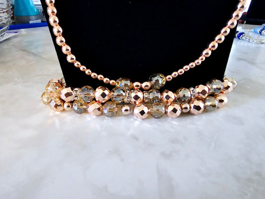Beaded Bracelet + Necklace Set Rose Gold Hematite Beads Fashion Statement Gift For Her