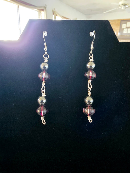 Beaded Earrings + Necklace Set Dark Purple Cat-Eye Silver Sun Charm Fashion Accessory Gift For Her